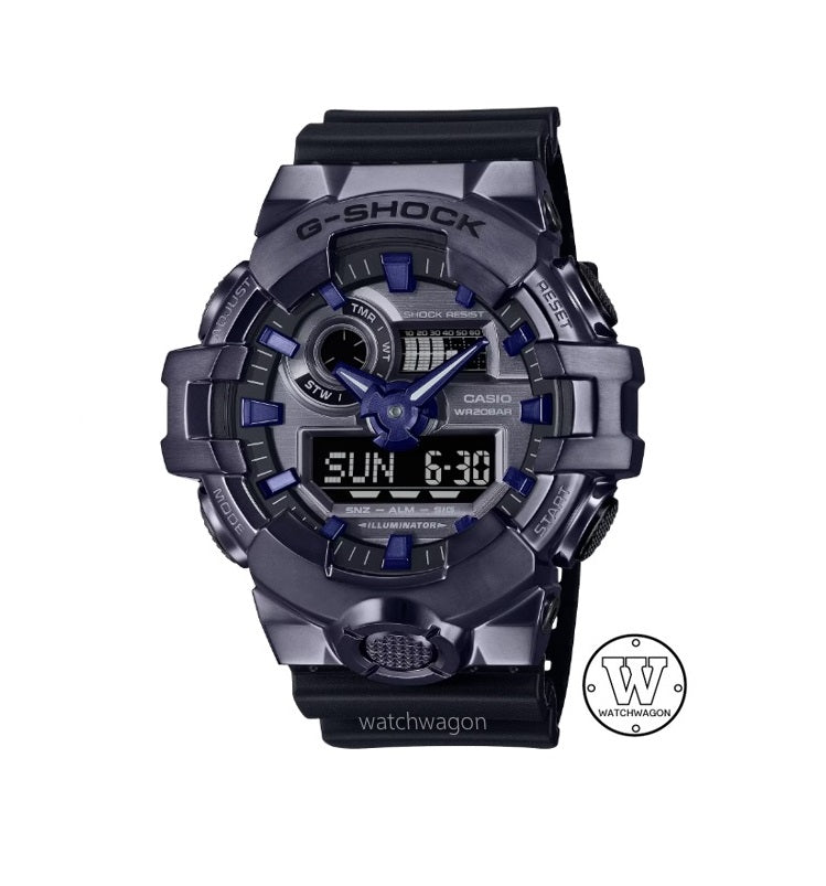 Casio G-Shock G-STEEL GM-700P-6A Purple Metal Bezel Black Resin Band Analog Digital Gents Watch gm-700