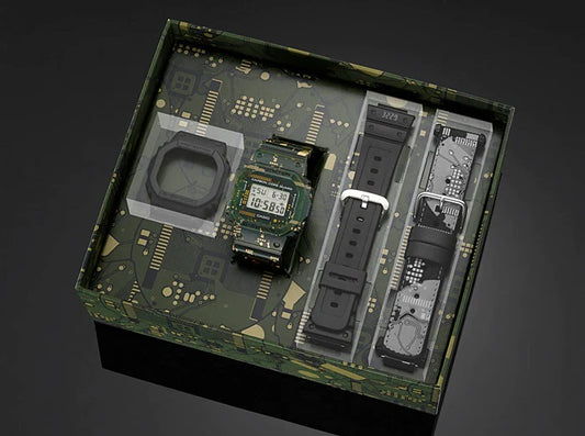 Casio G-Shock DWE-5600CC-3 Limited Edition Carbon Core Guard Circuit Board Camo Design Box Set with Extra Band and Bezel